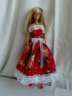 DarovanéTato kategorie vznikla v červenci 2005 a rozhodla jsem se ji udělat v okamžiku, kdy se mi nahromadilo několik desítek fotek s oblečky, které jsem šila specielně pro děvčátka z příbuzenstva nebo přátel nebo i na prodej. Většinou jsou různorodé, obsahují jak plesovky, sukně, kalhoty, halenky, tak i pletené a háčkované šatičky a jsou typické tím, že jsou mnohem jednodušší než modely z poslední doby, které šiju na ukázku nebo na výstavy.Důvod je jednoduchý, holčička má obvykle mezi 3-8 lety, takže čím mladší, tím méně vyšívání korálky a flitry, zdobím hlavně výraznými látkami, kanýry, krajkami, zlatými a stříbrnými stuhami, zkrátka tím, co se dá dobře přišít a hned se neutrhne. Šatičky přece musí nějaké to hraní vydržet. A že vydrží, to se hned přesvědčíte. Pak ještě existuje druhý důvod, proč nejsou tak bohatě zdobené. Povyšívat celý živůtek šatů trvá několik hodin, většinou tomu daruji několik večerů a dát potom takovéto šatičky na hraní dětem, to je mi zkrátka líto. Barbínky neustále oblékají a svlékají a to je dobře, k tomu přece slouží, korálky by se ale brzy otrhaly a šaty by už nebyly moc hezké. Pro Kačku 3