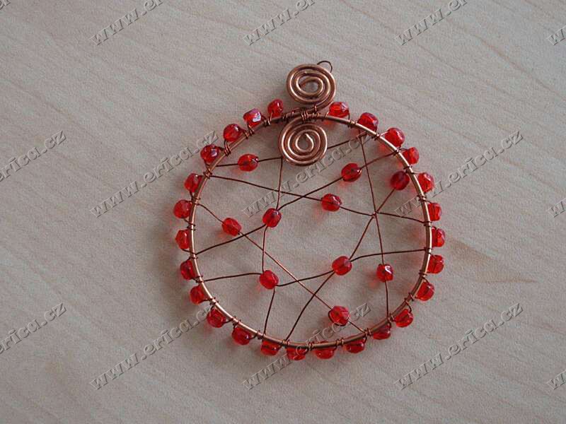 Drátované ozdoby ještě jednou (2008)V menším provedení jsem udělala několik ozdob na vánoční vázu. Pokud je budete chtít použít na větve jako já, vybírejte větve silnější, drátěné ozdoby jsou poměrně těžké a tak se ty moje tenké větvičky dost ohýbaly.