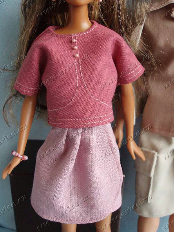 hnědé, béžové a hnědorůžové a pro Barbie jsem ušila zavinovací sukni s