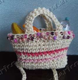 např. lýka. Vrchní část tašky jsem ozdobila drobnými korálky, které jsem