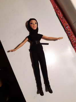 připravila panenku, celou jsem ji oblékla do černého pod plášť, masku