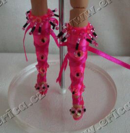 růžové a rozbité botičky, odřízla jsem pásky okolo nohou a na zbývající
