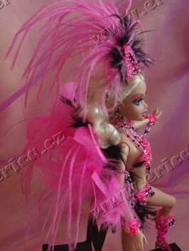 pošila flitry a korálky, korálky visí i na nohavičkách a na podprsence.