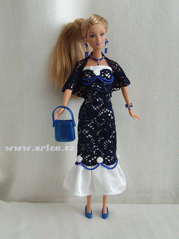 Po delší době se vracím ke krajce, mám jich několik a všechny jsou krásné samy o sobě, takže nepotřebují žádný složitý střih, spíš takový, kde vynikne vzor krajky. A takové myslím tyto šaty jsou, jediné zdobení jsou malé, bílé růžičky a šňůrky korálků. Opět jsem k nim vyrobila šperky a malý krajkový kabátek, kabelku jsem tentokrát použila již hotovou, barevně ladí ke střevíčkům.
