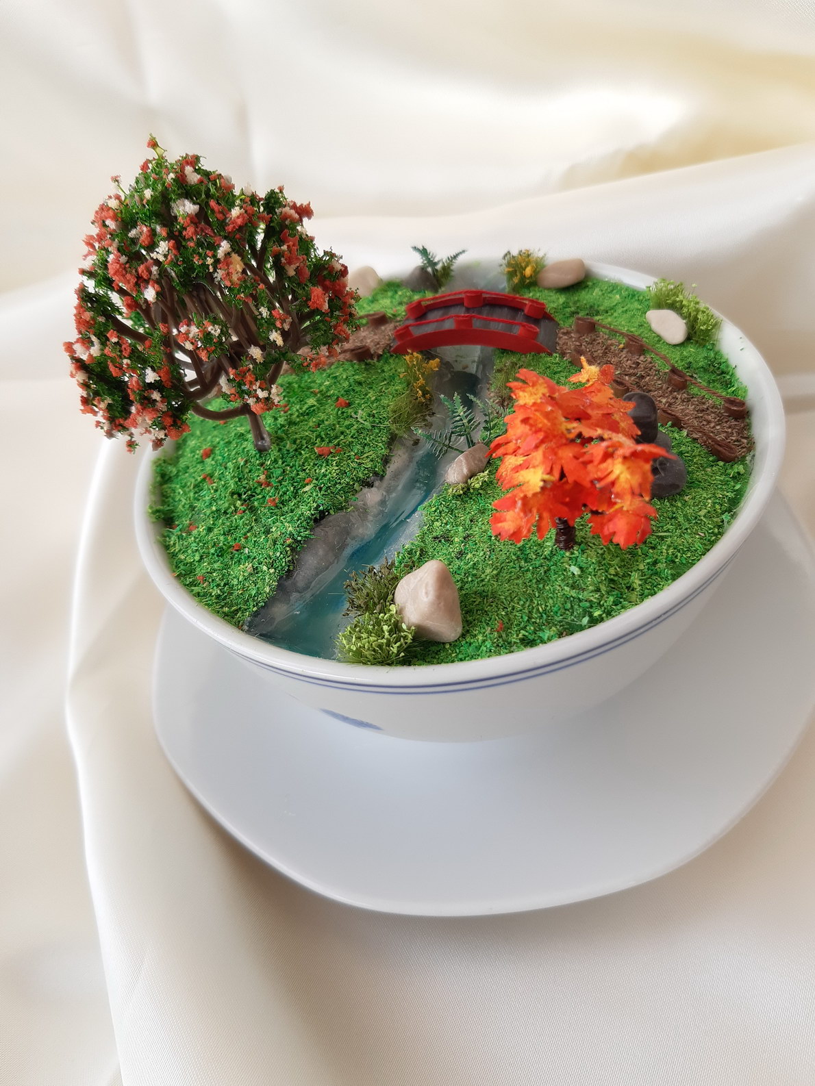 Další inspirace hrníčky, tentokrát je to asijská zahrada. Na tak malém