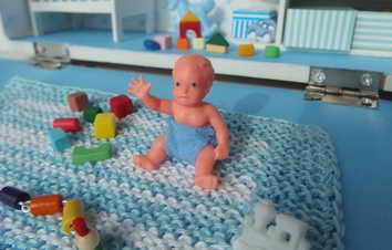 věcmi, upletla jsem deku na hraní. Nad postýlkou visí z drátu zhotovený