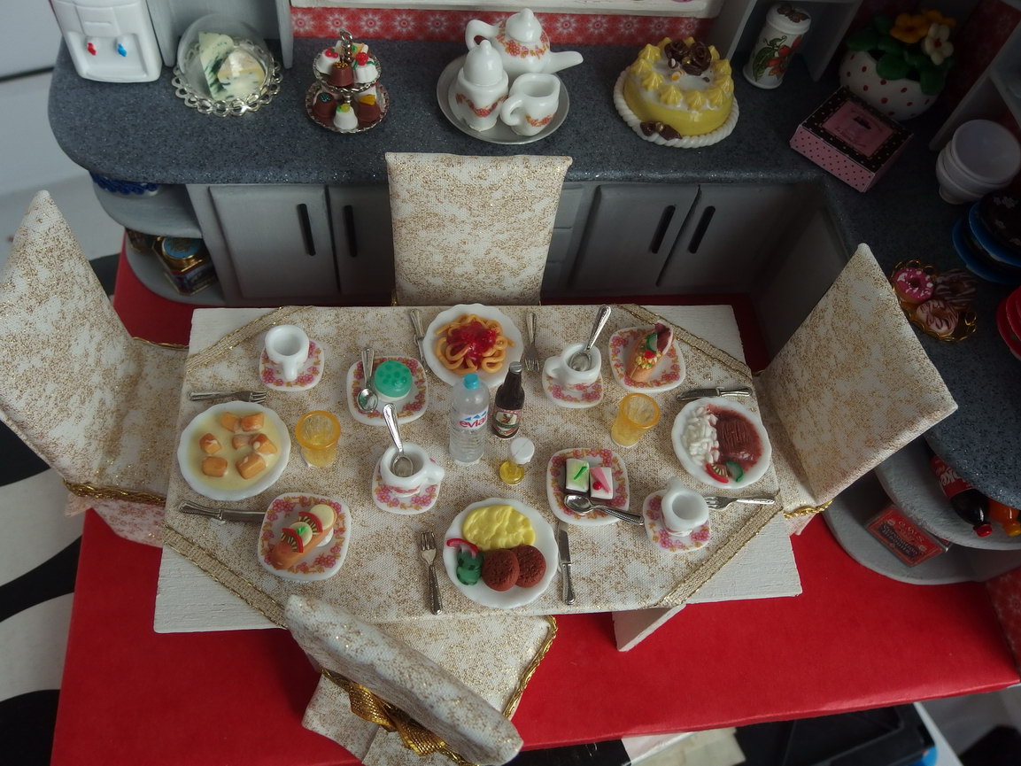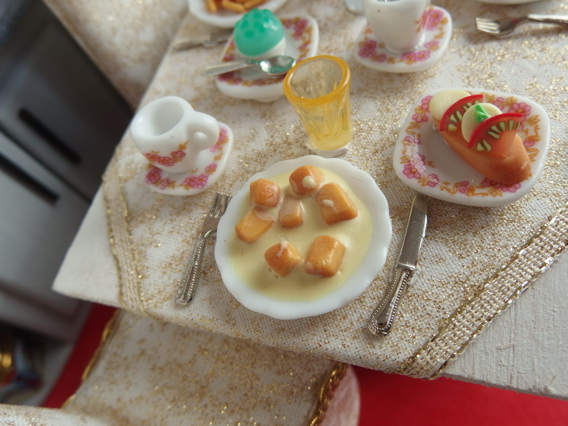 s kaší, samozřejmě i dort a dortíky a chlebíčky. Květina vlevo na okně