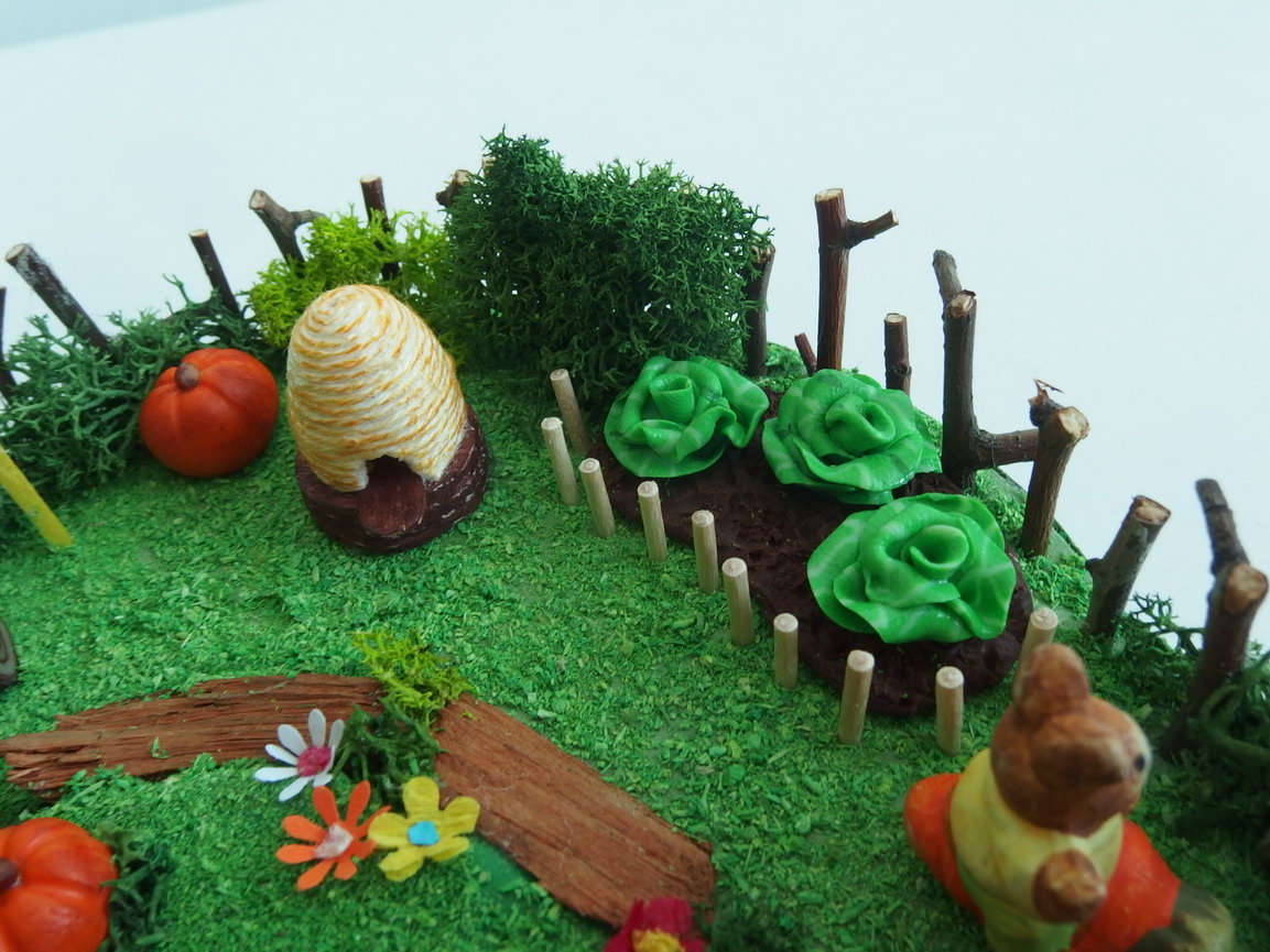 jsem lepila lepidlem UHU, zajíčci jsou koupení, ale studna, zelenina,