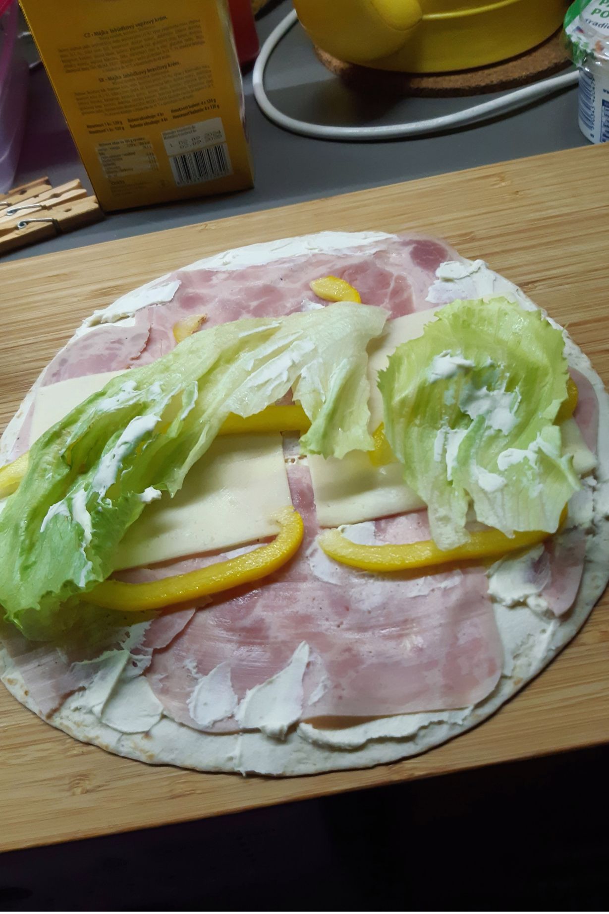 varianta - paštika, paprika, salát a plátkový sýr tavený, tady pozor, v