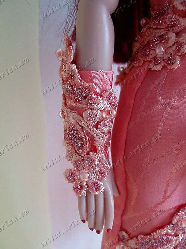 každou kytičku jsem přišila velký korálek ve stejné barvě jako jsou šaty.