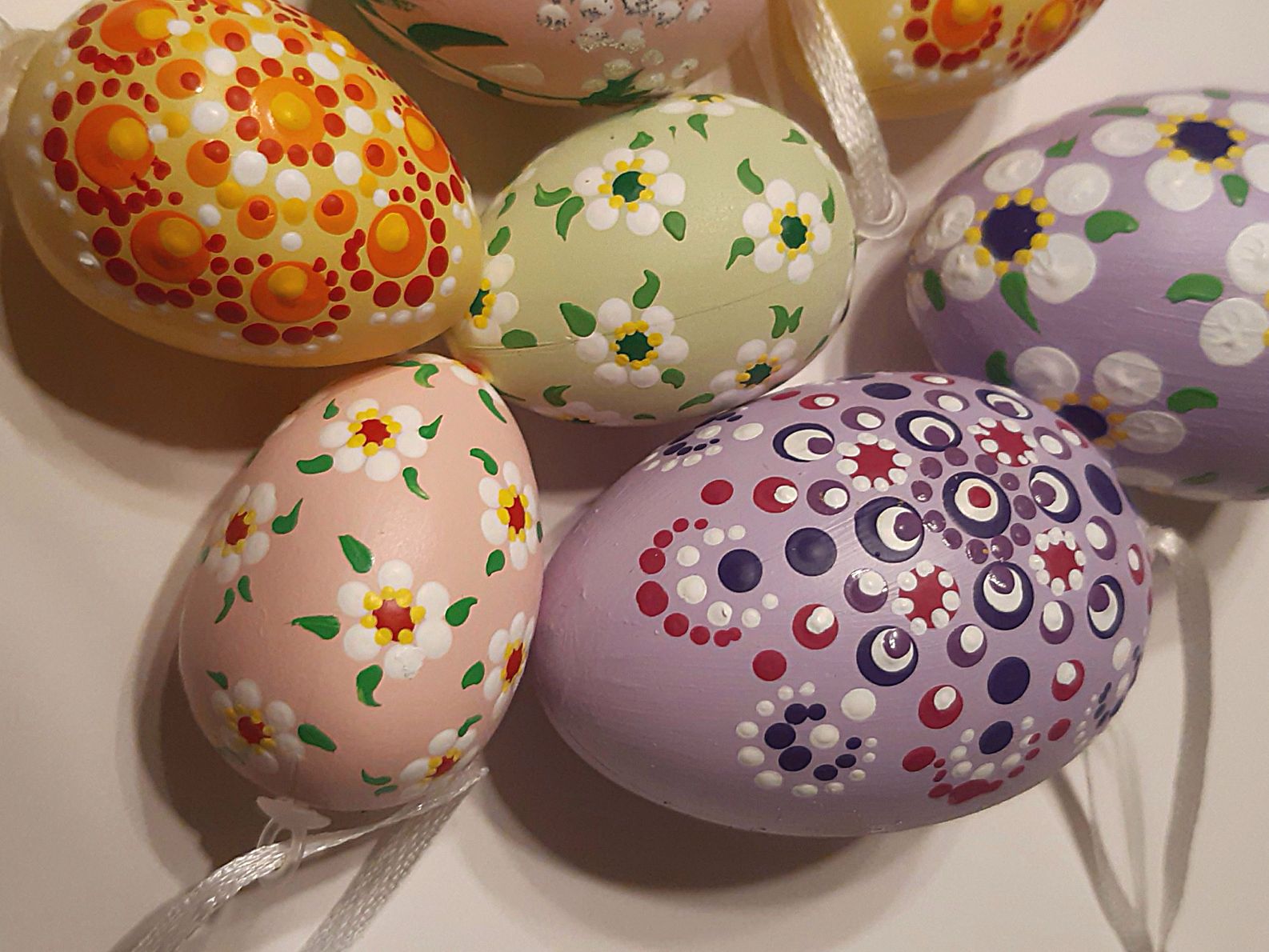 Tečkované krasliceKdyž už tečkuju ty kameny a sem tam i vánoční ozdoby, proč neotečkovat kraslice? Zkusila jsem to a nedopadlo to vůbec špatně, i když jsem zvolila i pár divočejších kombinací.