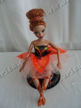 jsou polepené oranžovým glitrovým lepidlem. Živůtek je jednoduchý, černý,